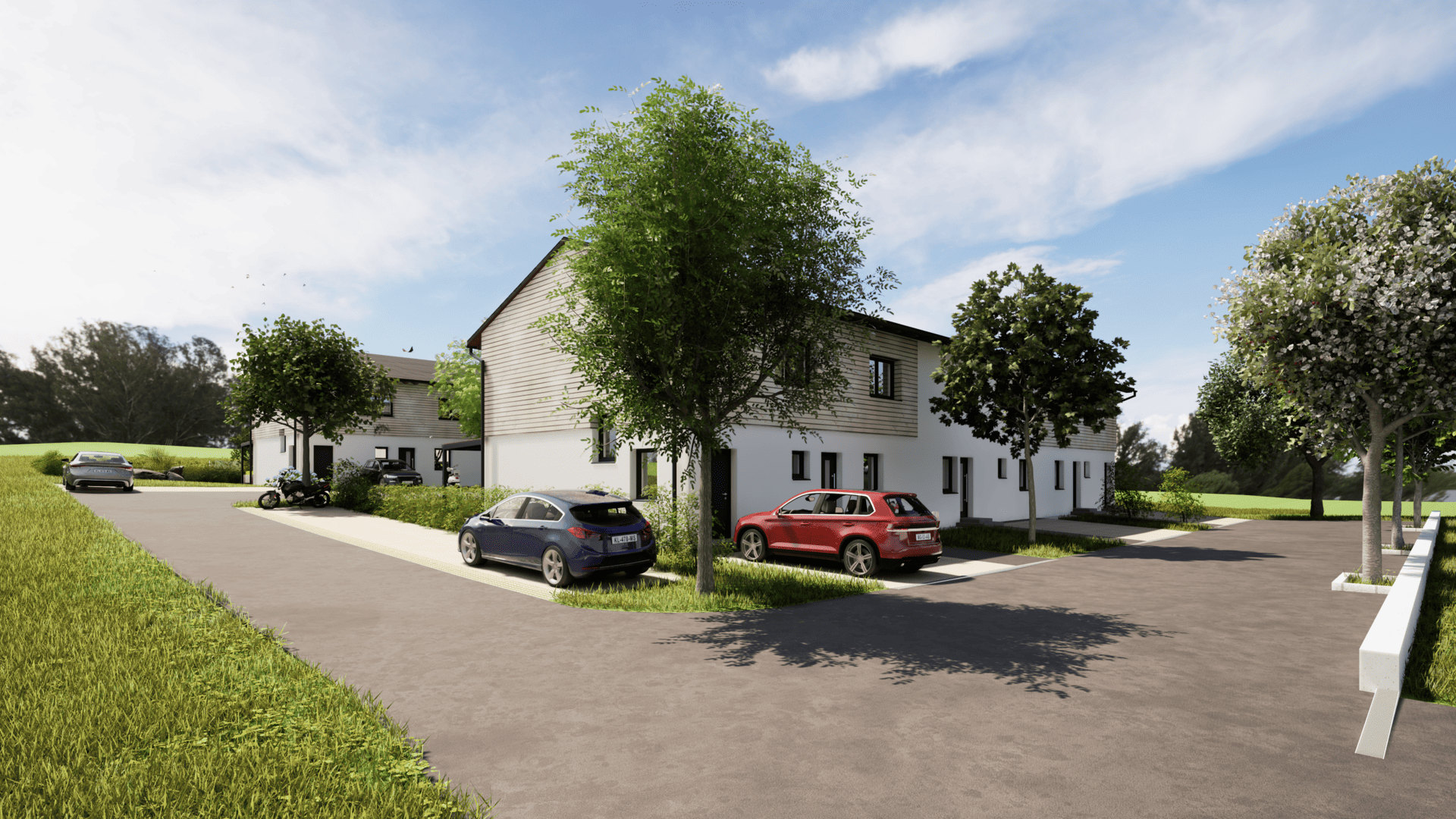 Familienfreundliches Reihenhaus mit ca. 139 m² Wohnfläche auf zwei Ebenen, 5 Zimmern, zwei Bädern, Eigengarten, überdachter Terrasse, Hauswirtschafts- und Technikraum sowie zwei PKW-Stellplätzen.